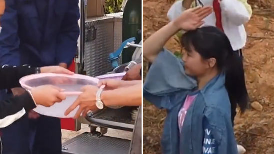 消防员进山为村小送饮用水 女生哭着敬礼感谢