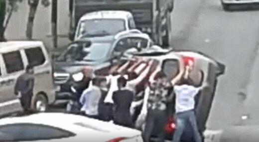 车辆侧翻驾驶员被困 还好有他们合力相助