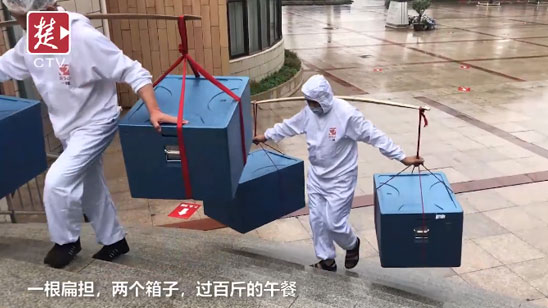 每天爬8趟,负重千斤!武汉食堂师傅化身校园挑山工为学生送饭