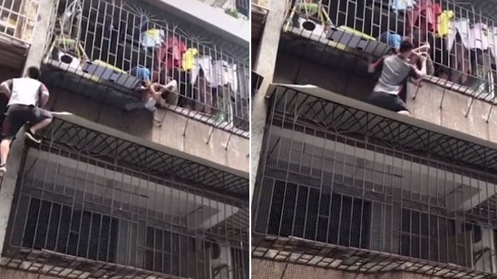 为救人快递小哥变身蜘蛛侠