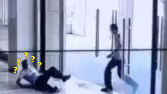 心疼!消防员出警跑太急 撞玻璃门倒地