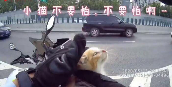 早高峰小奶猫被困马路 暖心交警走进车流将其救下