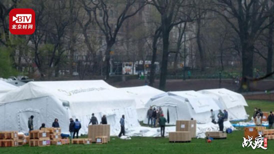 纽约中央公园建起野战医院:有68个床位 31日开始收治新冠患者