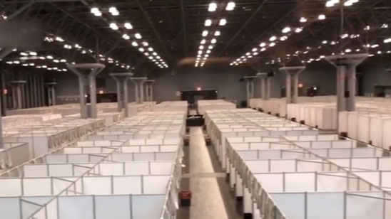 实拍纽约“方舱”贾维茨中心内景 近三千张病床就绪