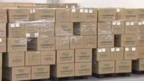 日本从中国进口的1000万枚口罩已抵达,书写:“山川异域,风月同天,日本加油”