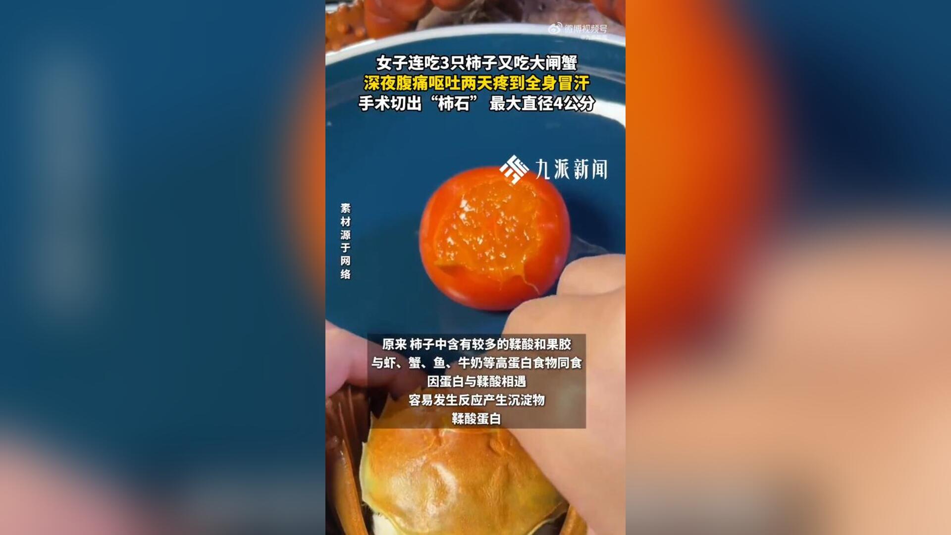 吃3只柿子又吃大闸蟹 手术切出柿石