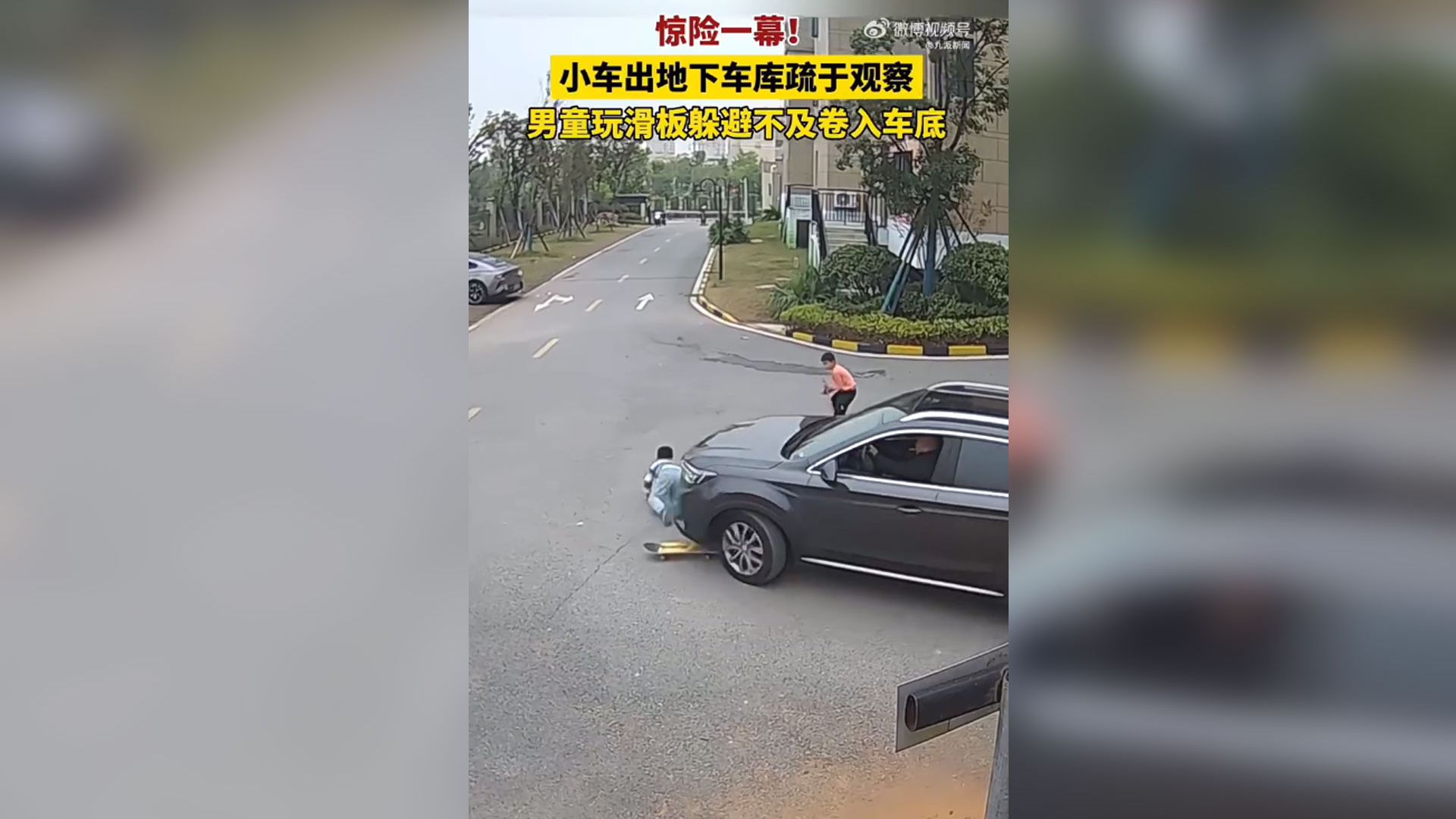 家长要看好孩子!男童车库出口玩滑板被卷入车底,致骨折