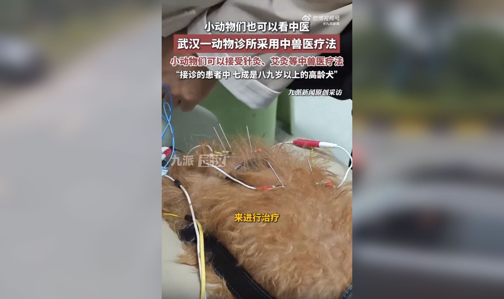 武汉一动物诊所采用中兽医疗法为宠物看病:可以针灸、艾灸等