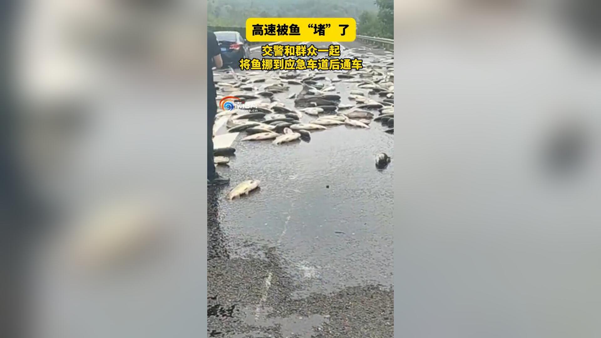 高速被鱼“堵”了!交警和群众一起将鱼挪到应急车道后通车