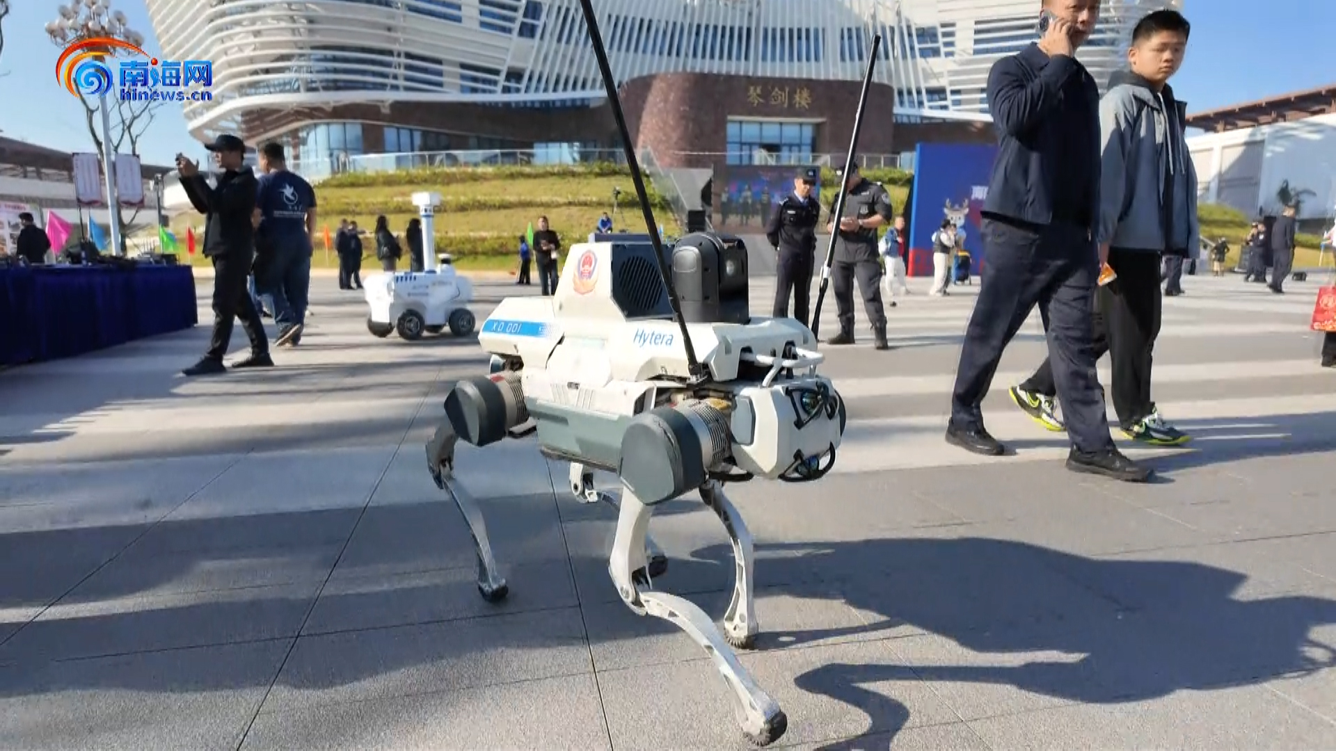 集搜救、治安巡逻等功能……海南公安警营开放日亮相的机器人科技感十足