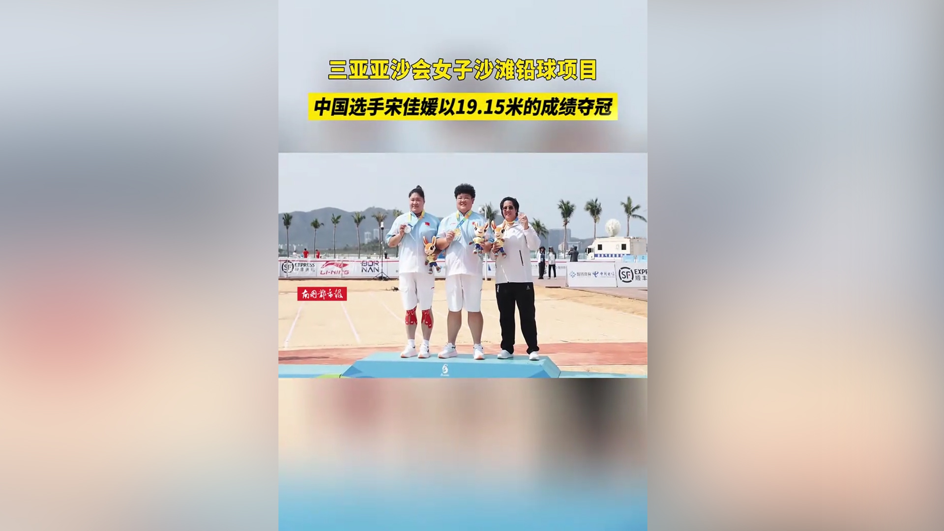 三亚亚沙会女子沙滩铅球项目 中国选手宋佳媛以19.15米的成绩夺冠