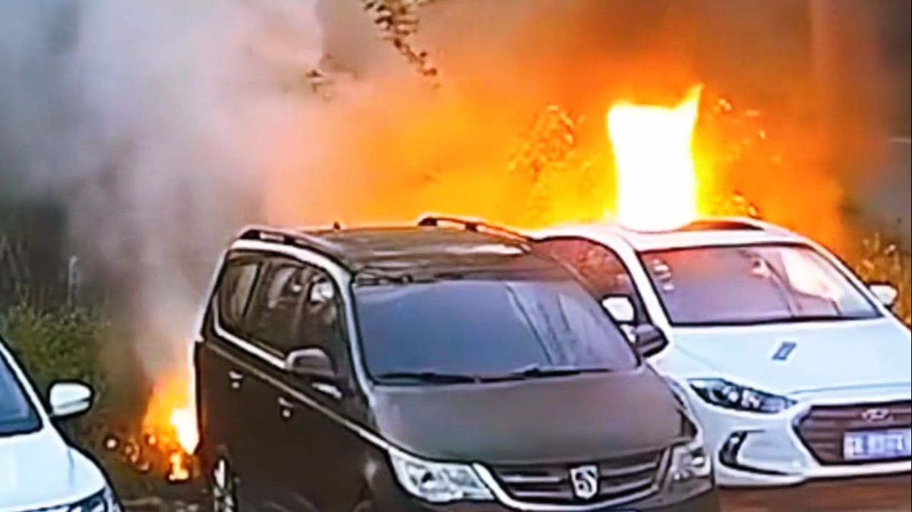 男子手欠点燃柳絮引路边小车起火 被民警带走