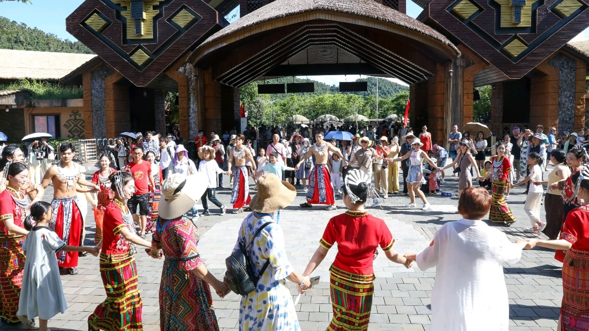 椰视频 | 保亭槟榔谷“双节”假期人气爆棚 游客沉浸式追非遗之光