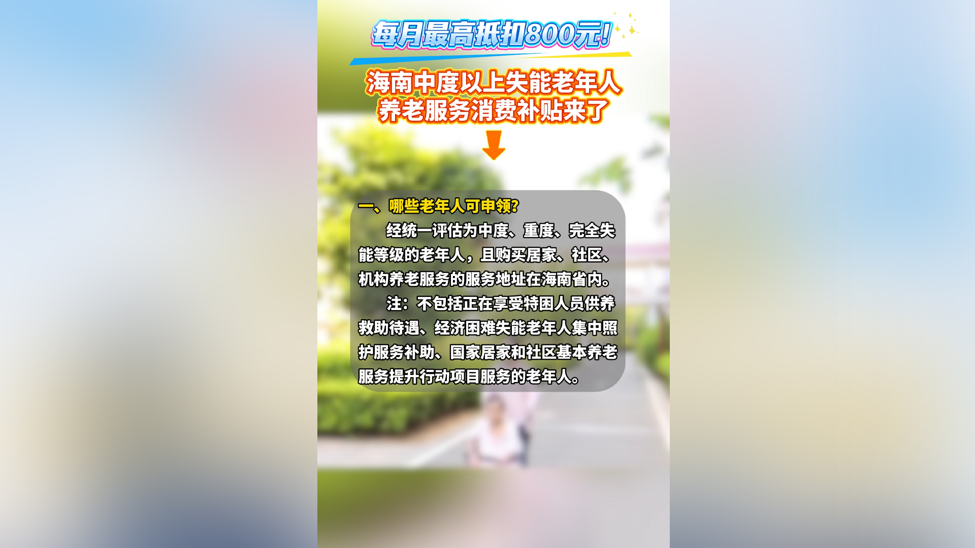 每月最高抵扣800元!海南中度以上失能老年人养老服务消费补贴来了