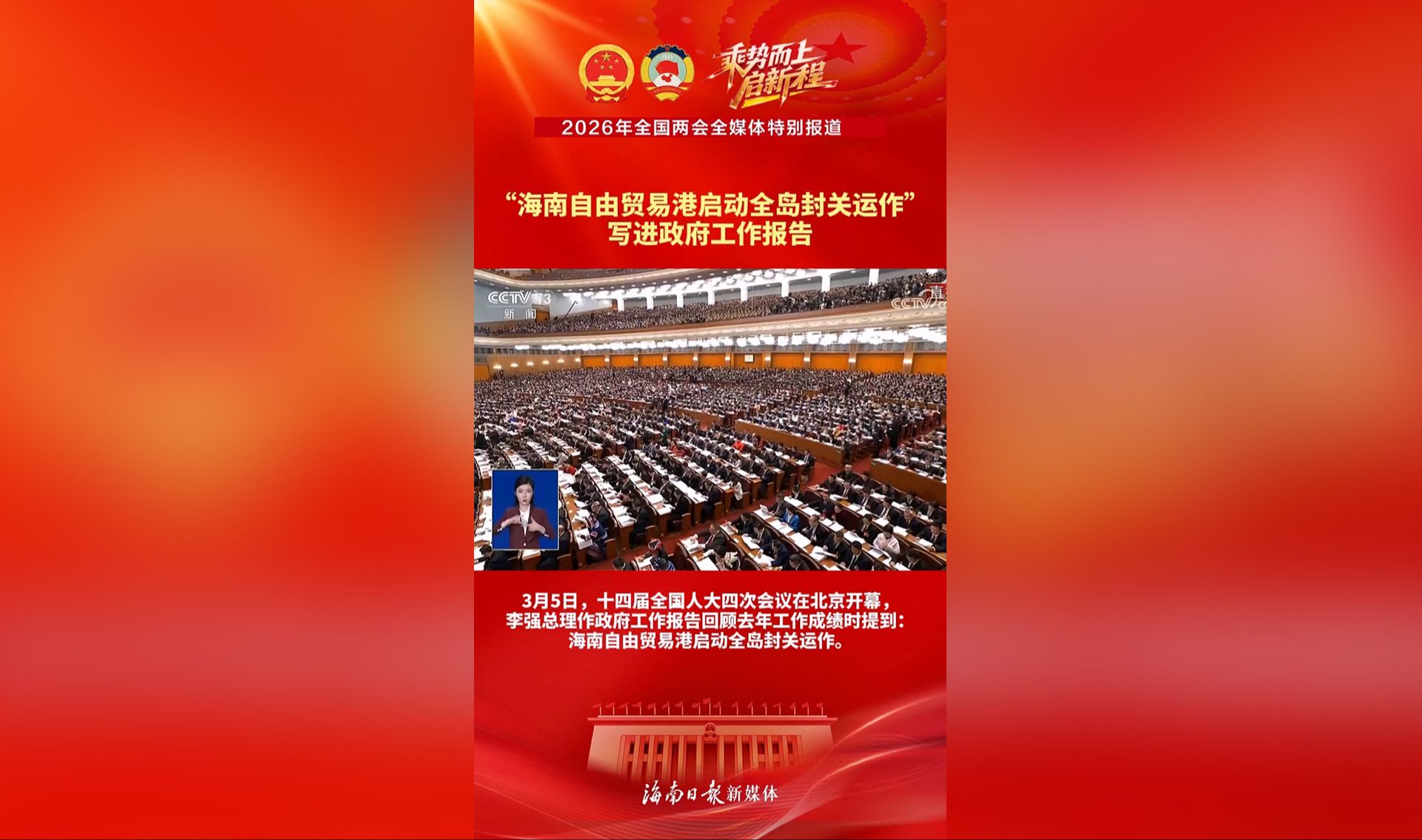 “海南自由贸易港启动全岛封关运作”写进政府工作报告