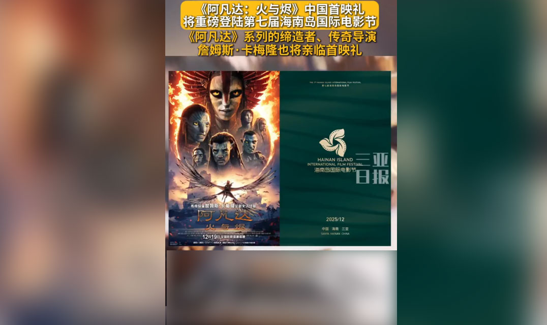 《阿凡达:火与烬》中国首映礼将重磅登陆第七届海南岛国际电影节!