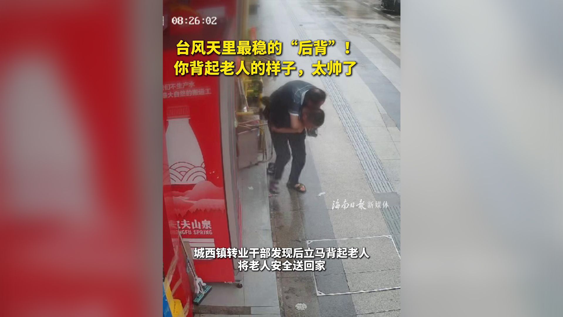 台风天里最稳的“后背”!你背起老人的样子,太帅了