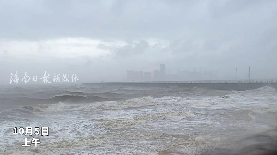 危险!听劝!海口滨海大道沿线海域海浪汹涌,仍有游客冒险前往