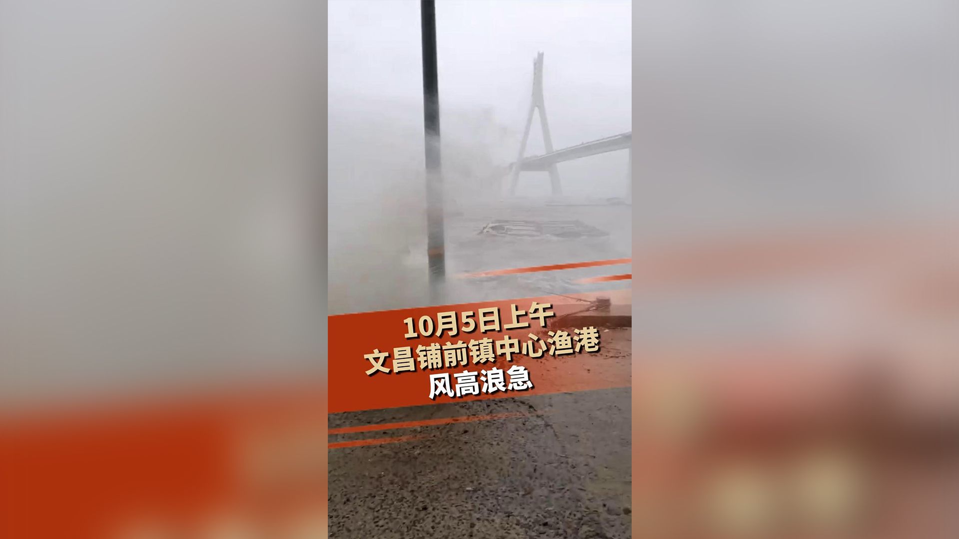 10月5日上午,文昌铺前镇中心渔港风高浪急
