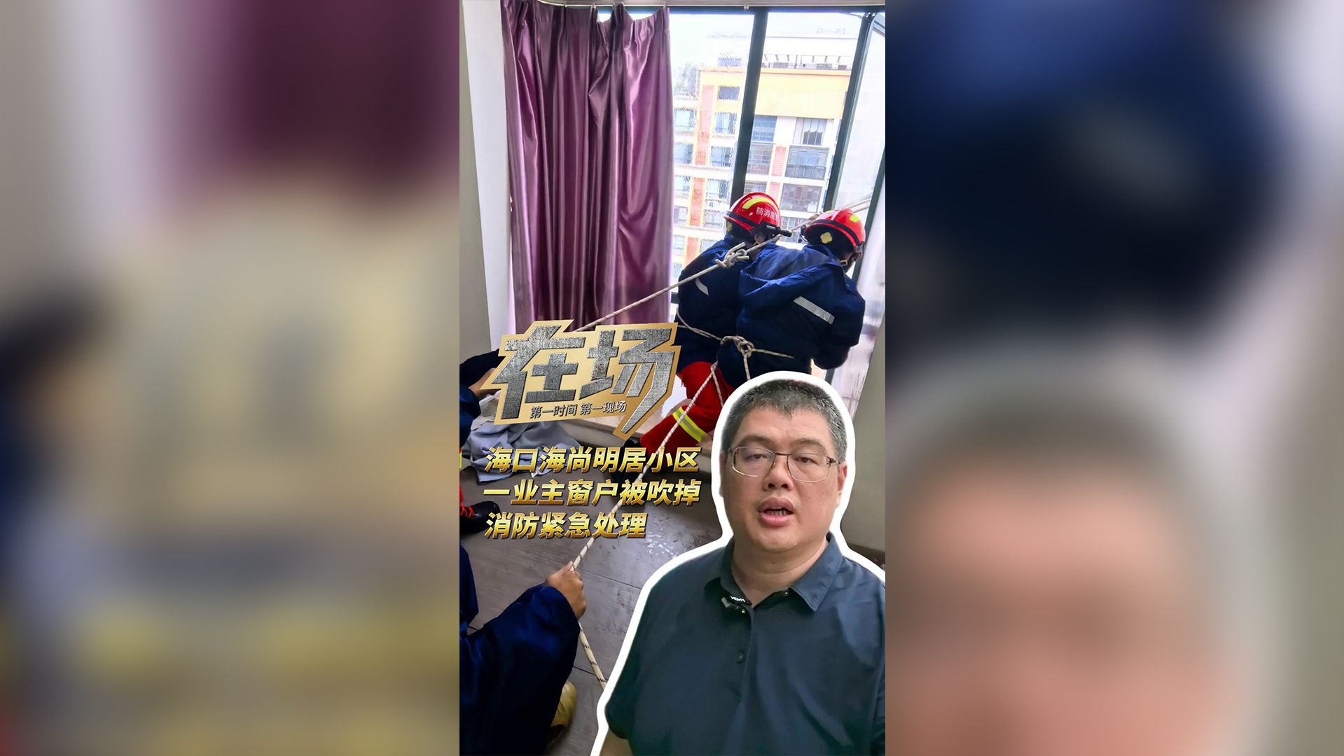 在场 | 海口海尚明居小区一业主窗户被吹掉,消防紧急处理