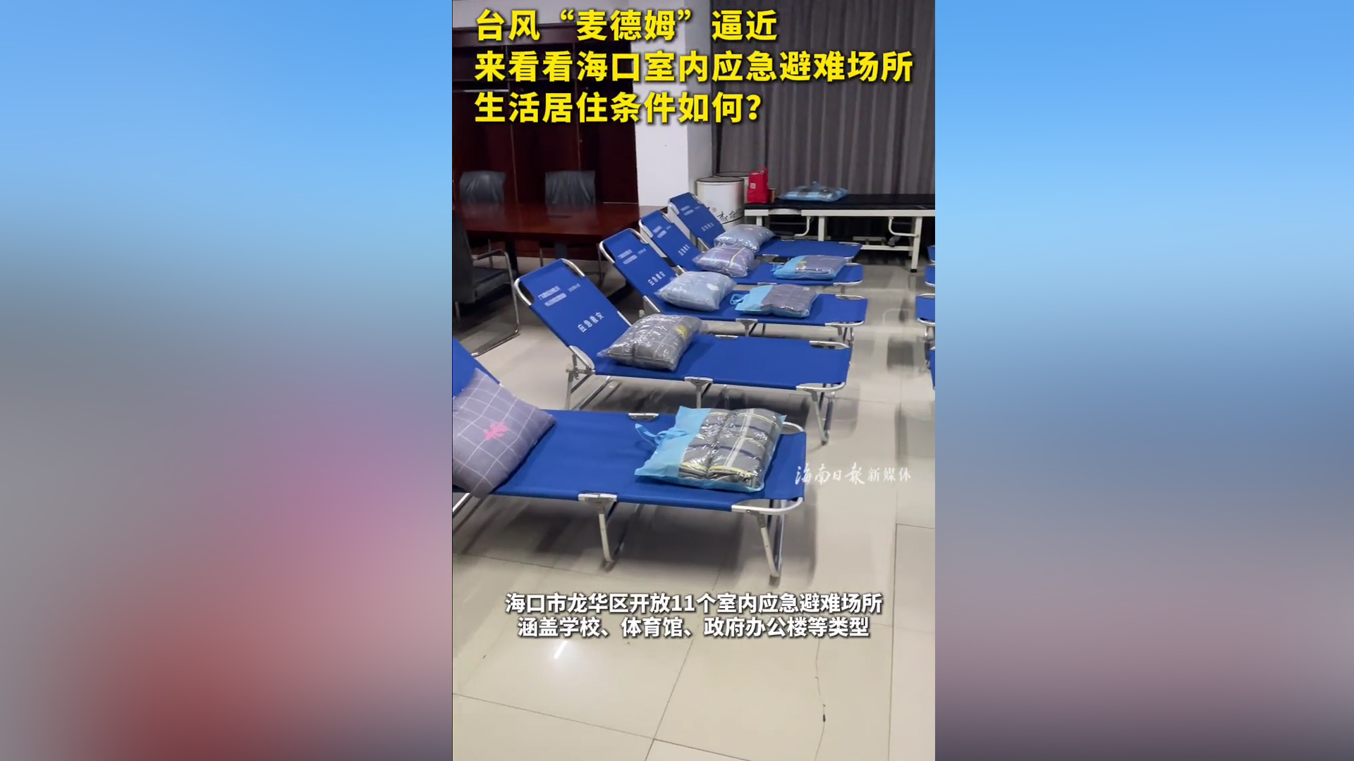 台风“麦德姆”逼近,来看看海口室内应急避难场所生活居住条件如何?