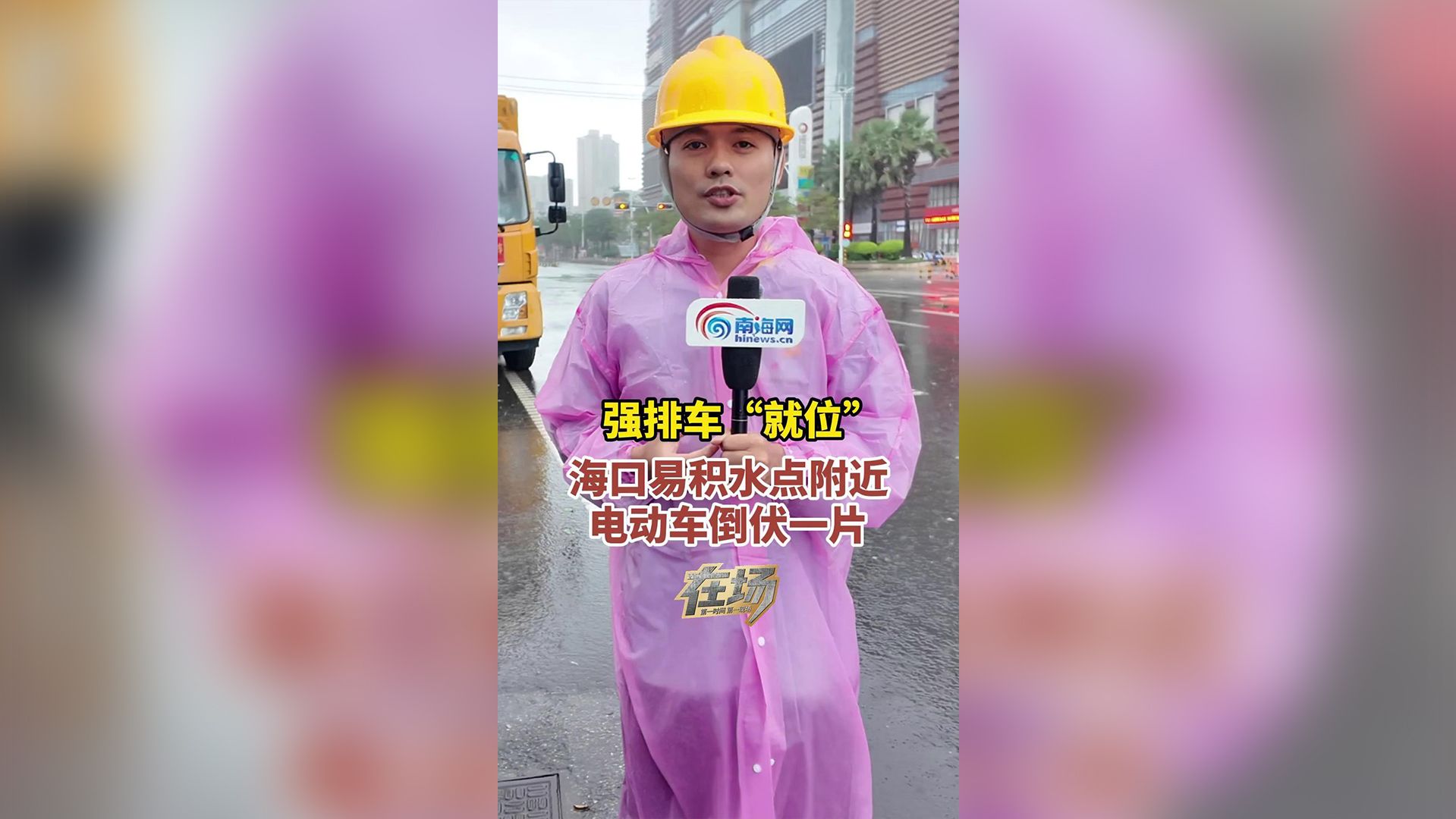 在场 | 强排车“就位”,海口易积水点附近电动车倒伏一片