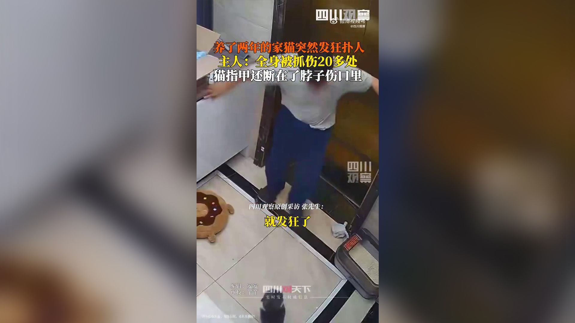 猫主人回应全身被抓伤20多处:养了两年多,突然发狂攻击人