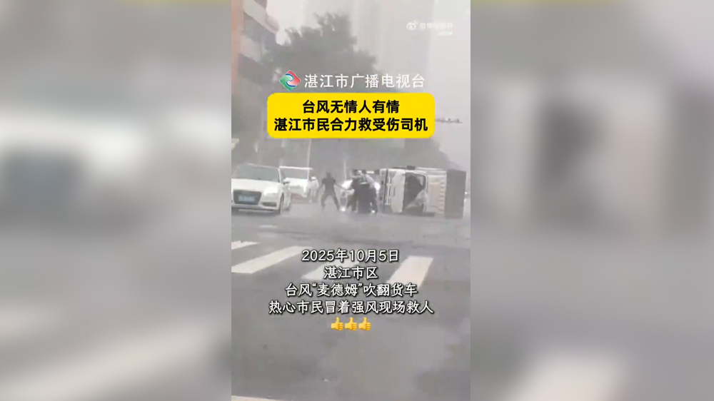 台风“麦德姆”吹翻货车,热心市民冒着强风合力救受伤司机