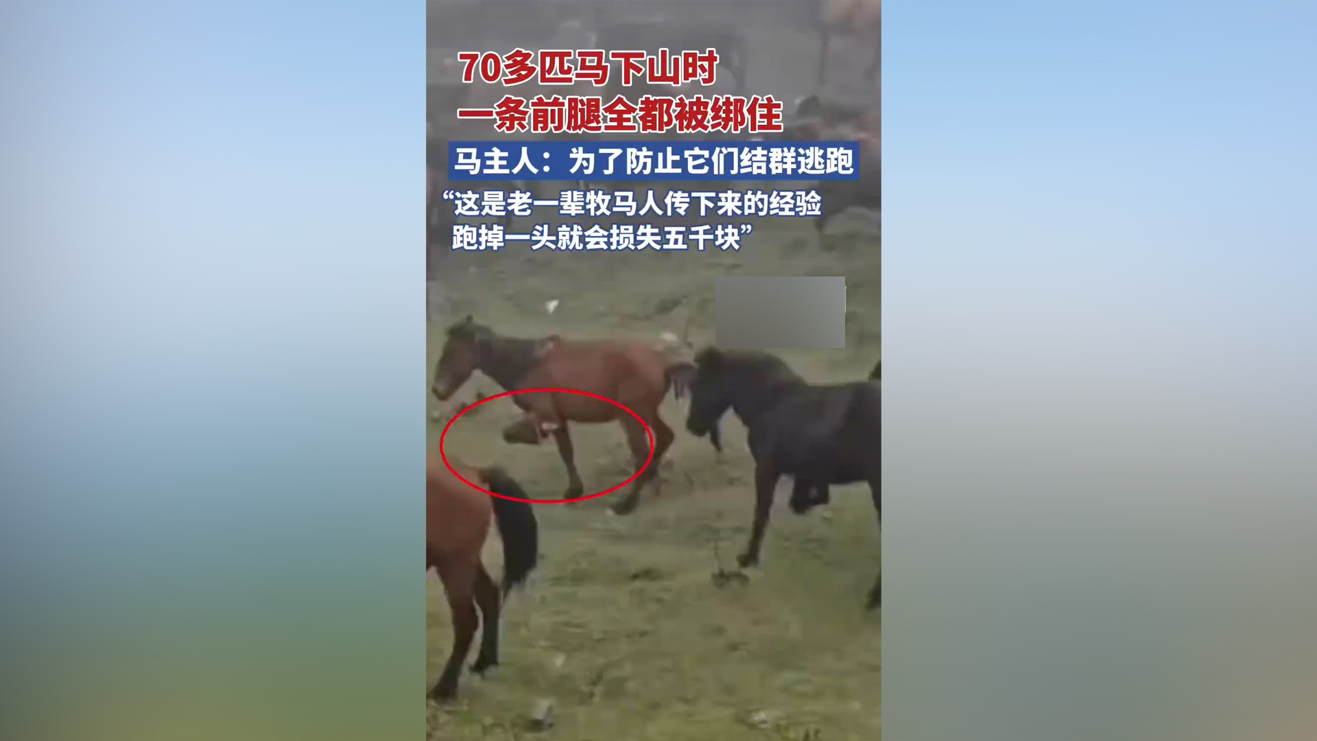 马主回应70多匹马下山时被绑前腿:防止它们结群逃跑