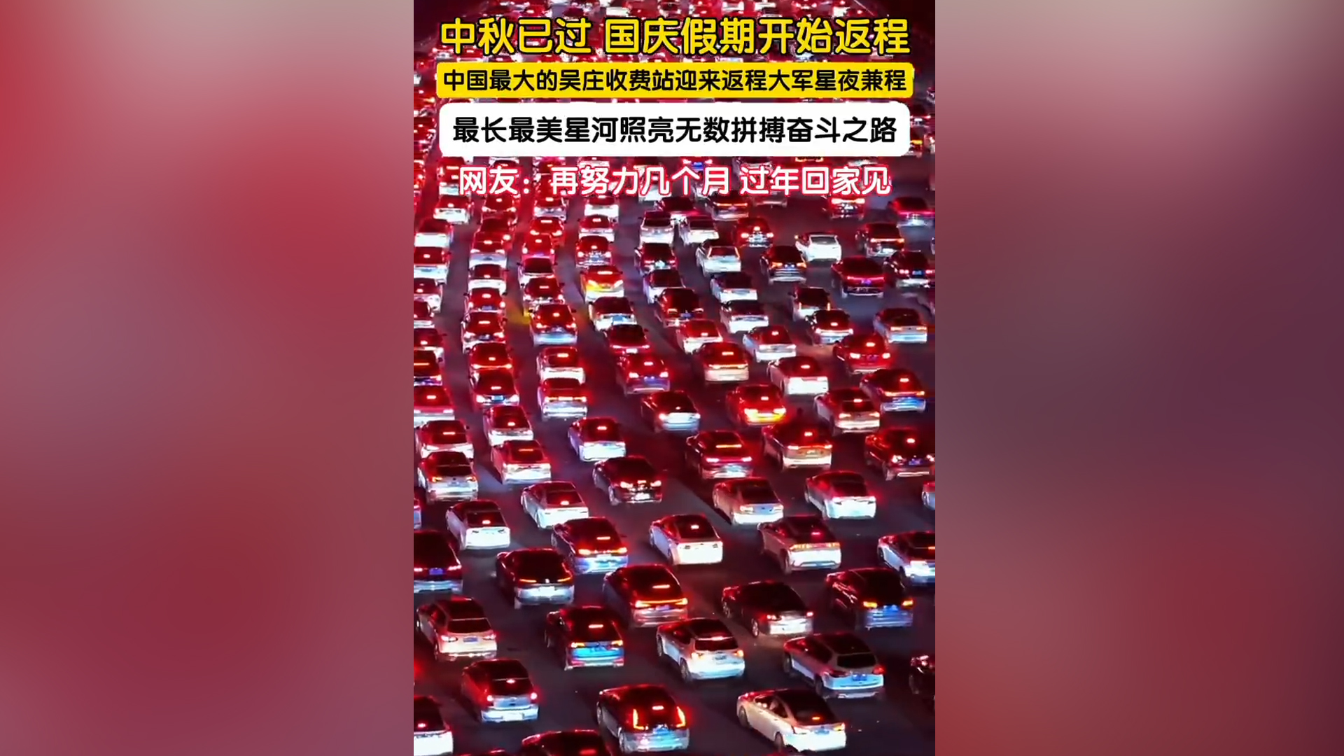 中国最大收费站亮起返程星河 36车道挤满返程大军