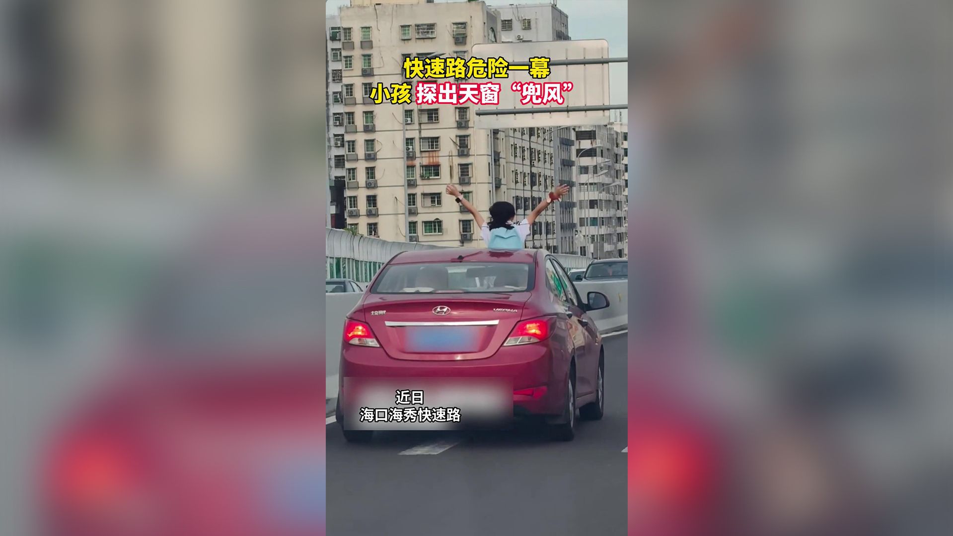 海口海秀快速路现惊险一幕:有小孩探出天窗“兜风”!