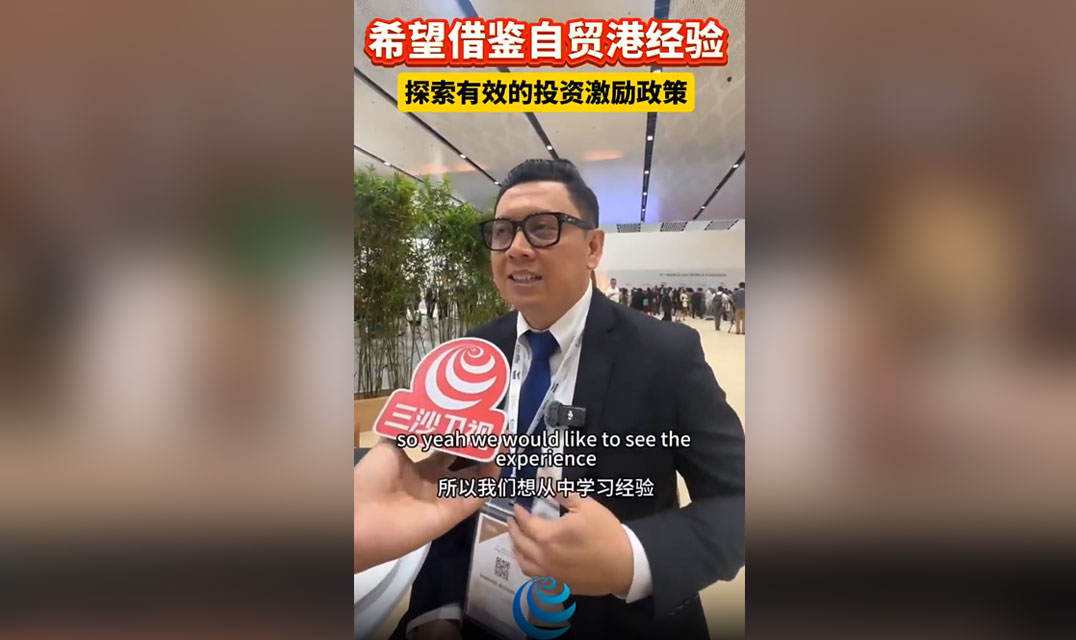 世界⾃由区组织CEO 萨⽶尔·哈姆罗尼博⼠:很多创新的做法正在海南实践 期待看到海南自贸港的成功经验