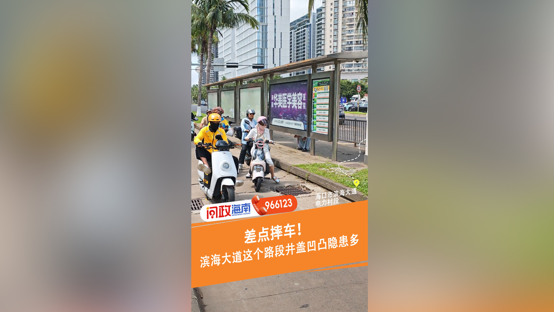 问政海南丨海口滨海大道非机动车道井盖不平边缘裸露 记者走访目睹市民差点摔车