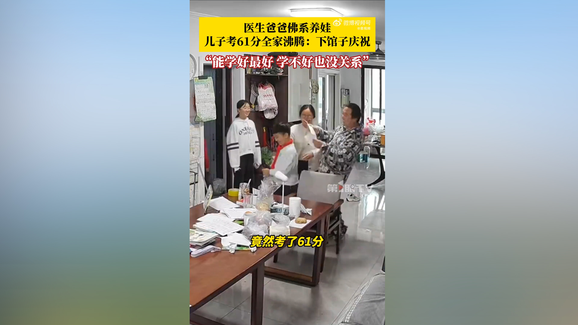 医生爸爸佛系养娃 儿子考61分全家“沸腾”
