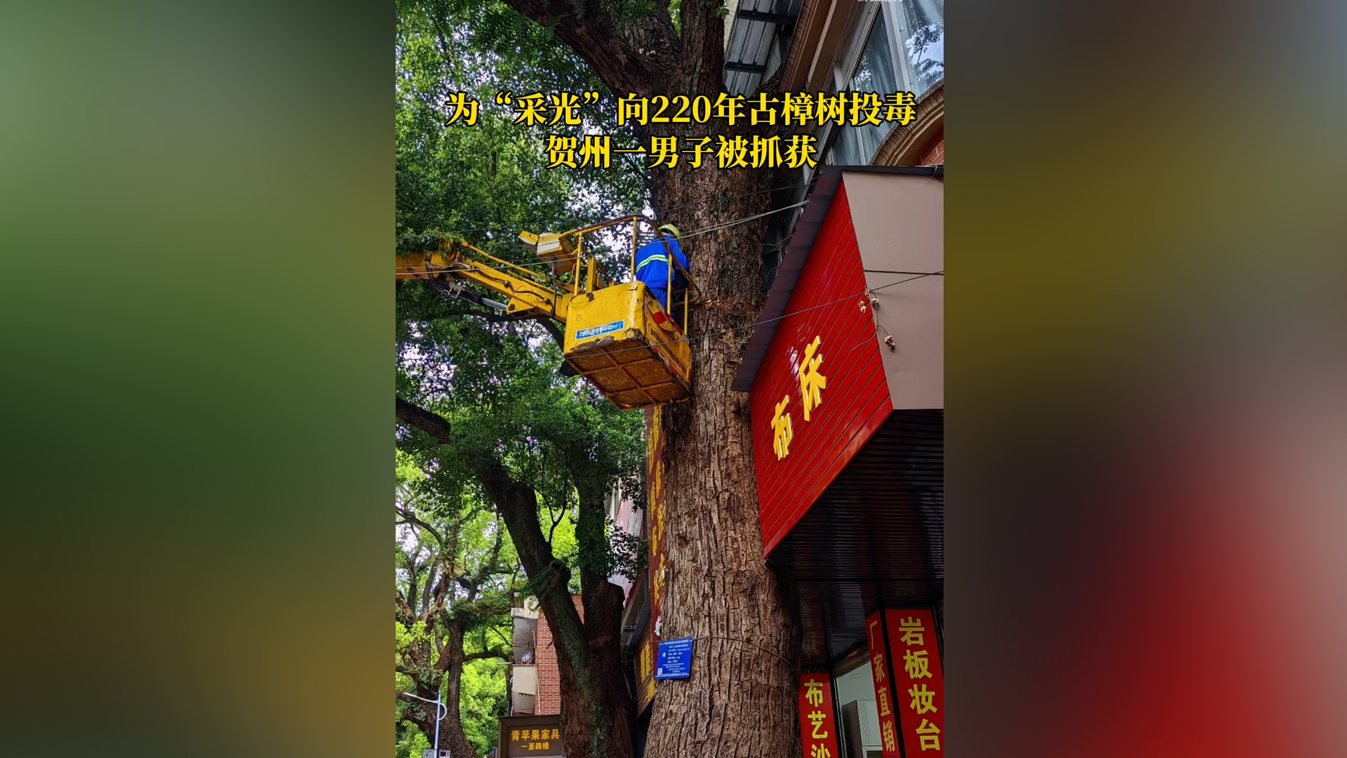 男子多次向220年古树投毒被抓:枝叶遮挡采光产生“除树”念头