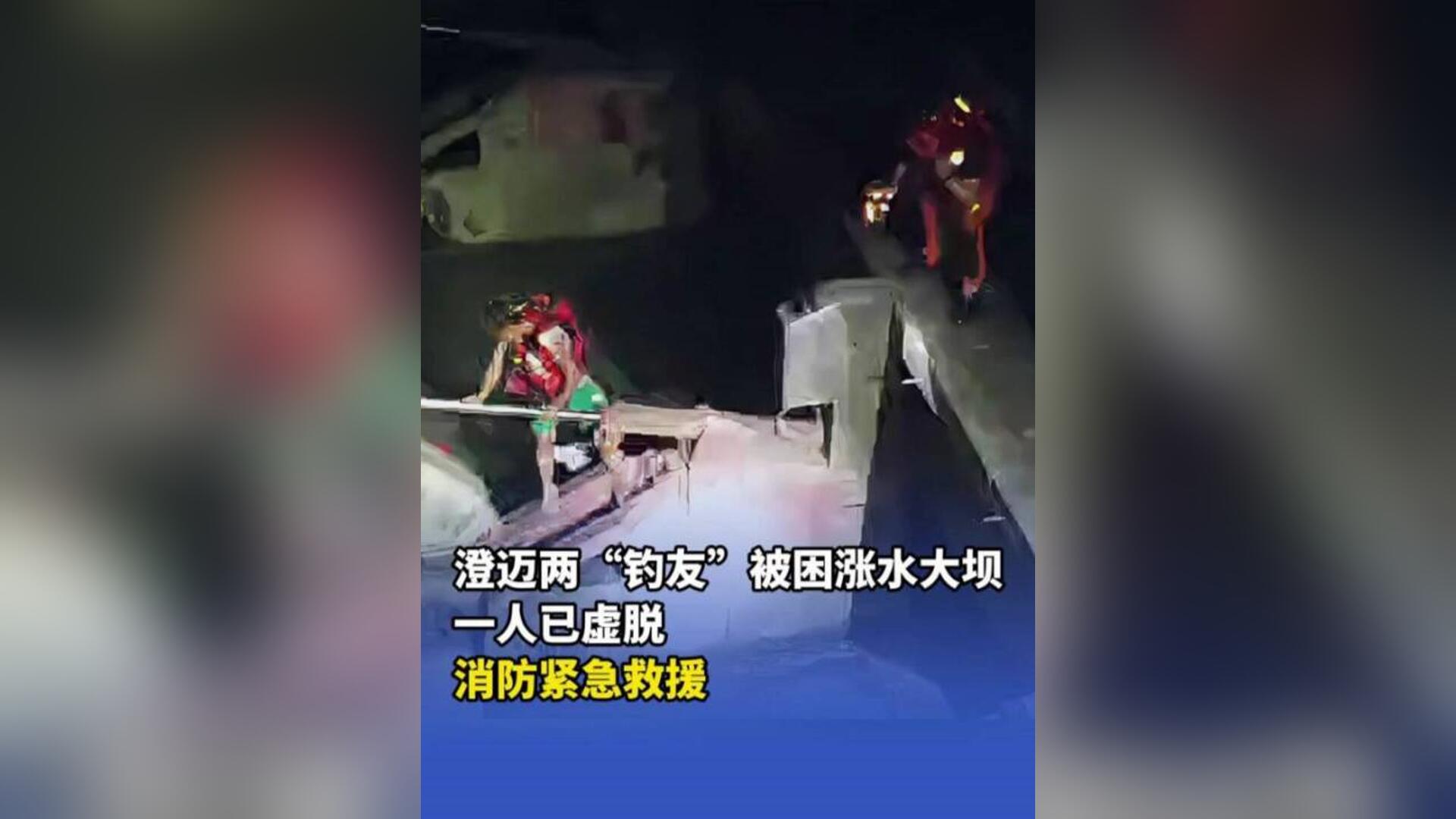澄迈两“钓友”被困涨水大坝,一人已虚脱……消防紧急救援