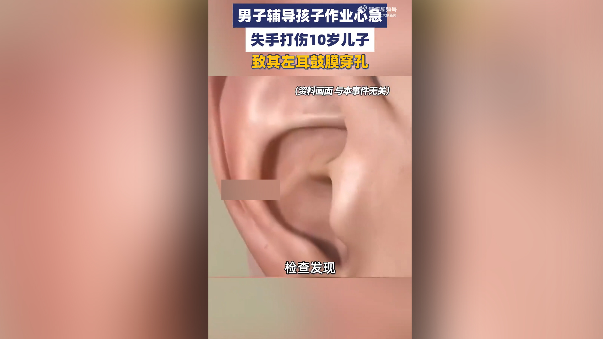 男子辅导作业打伤儿子致其鼓膜穿孔