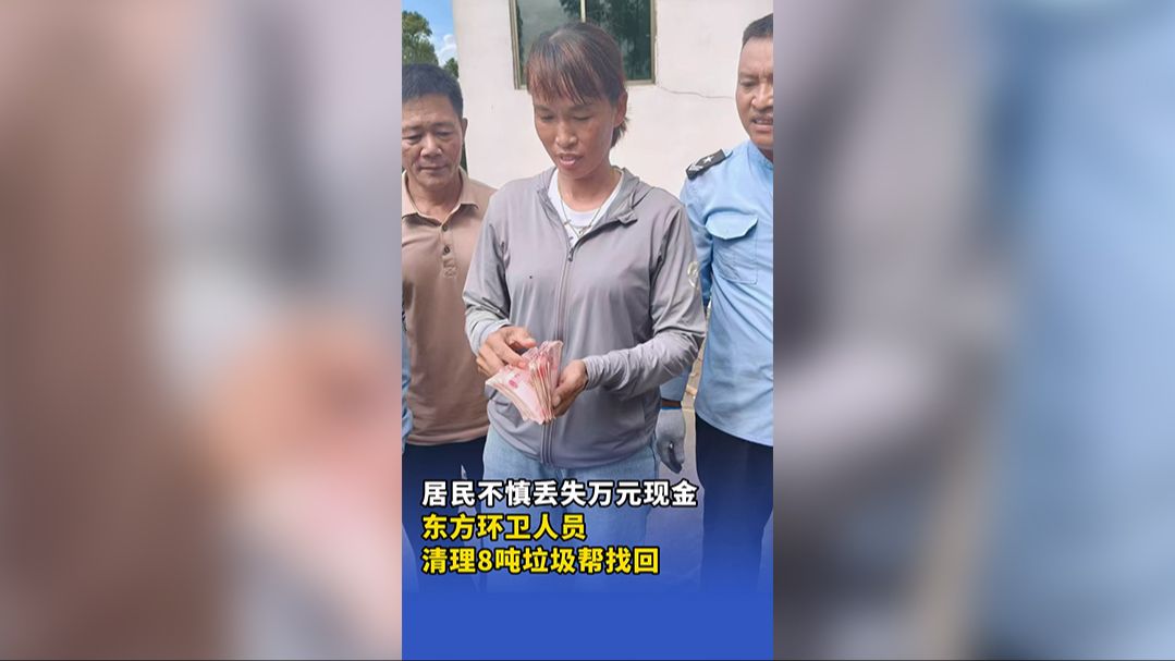 居民不慎丢失万元现金,东方环卫人员清理8吨垃圾帮找回