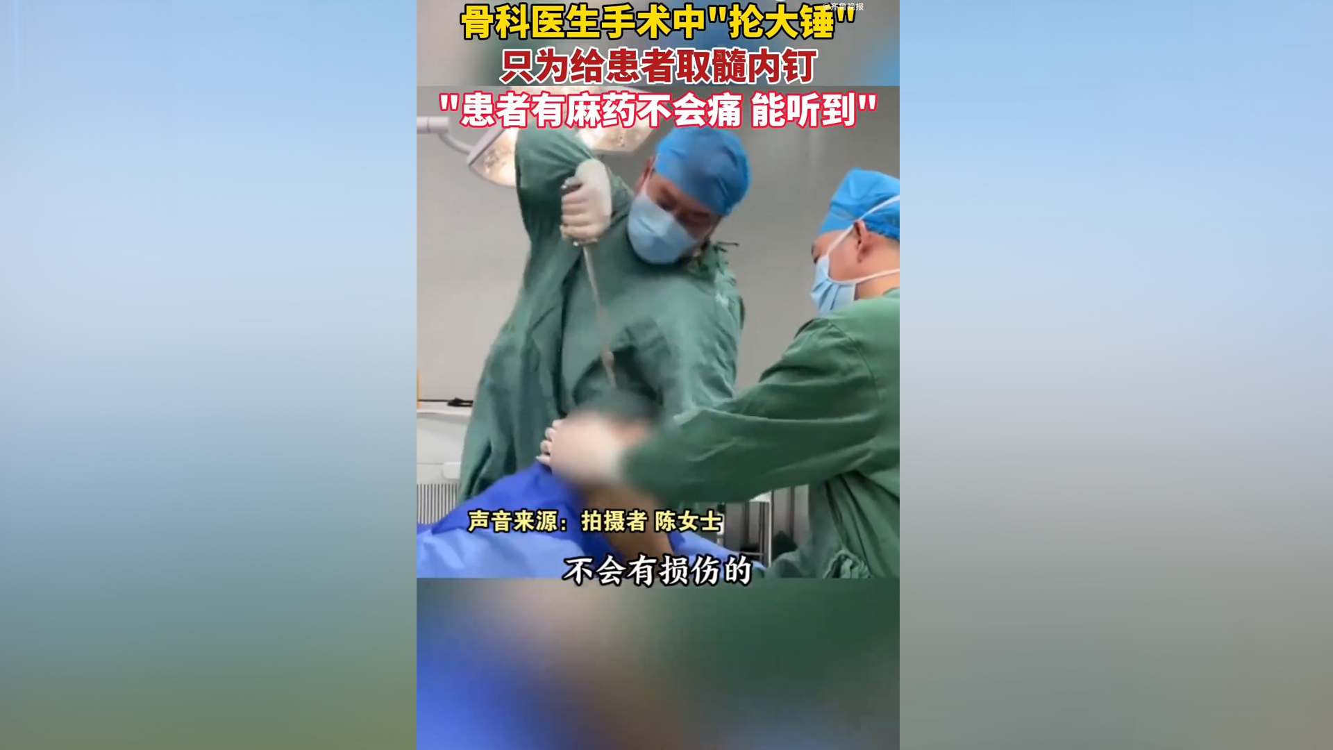 医生手术中抡大锤式给患者取髓内钉:患者有麻药不会痛