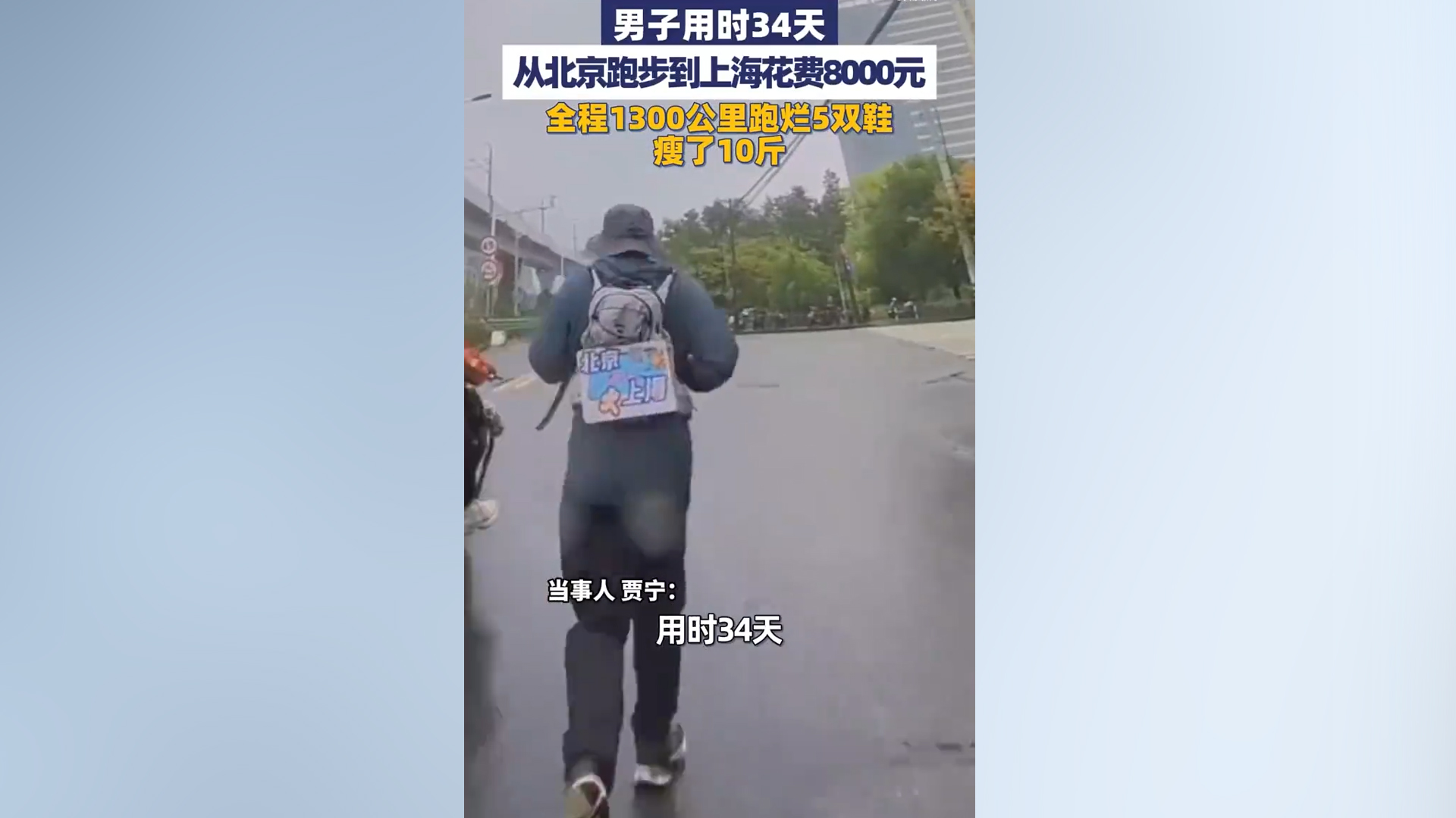 男子用34天从北京跑步到上海 花费8000元跑烂5双鞋