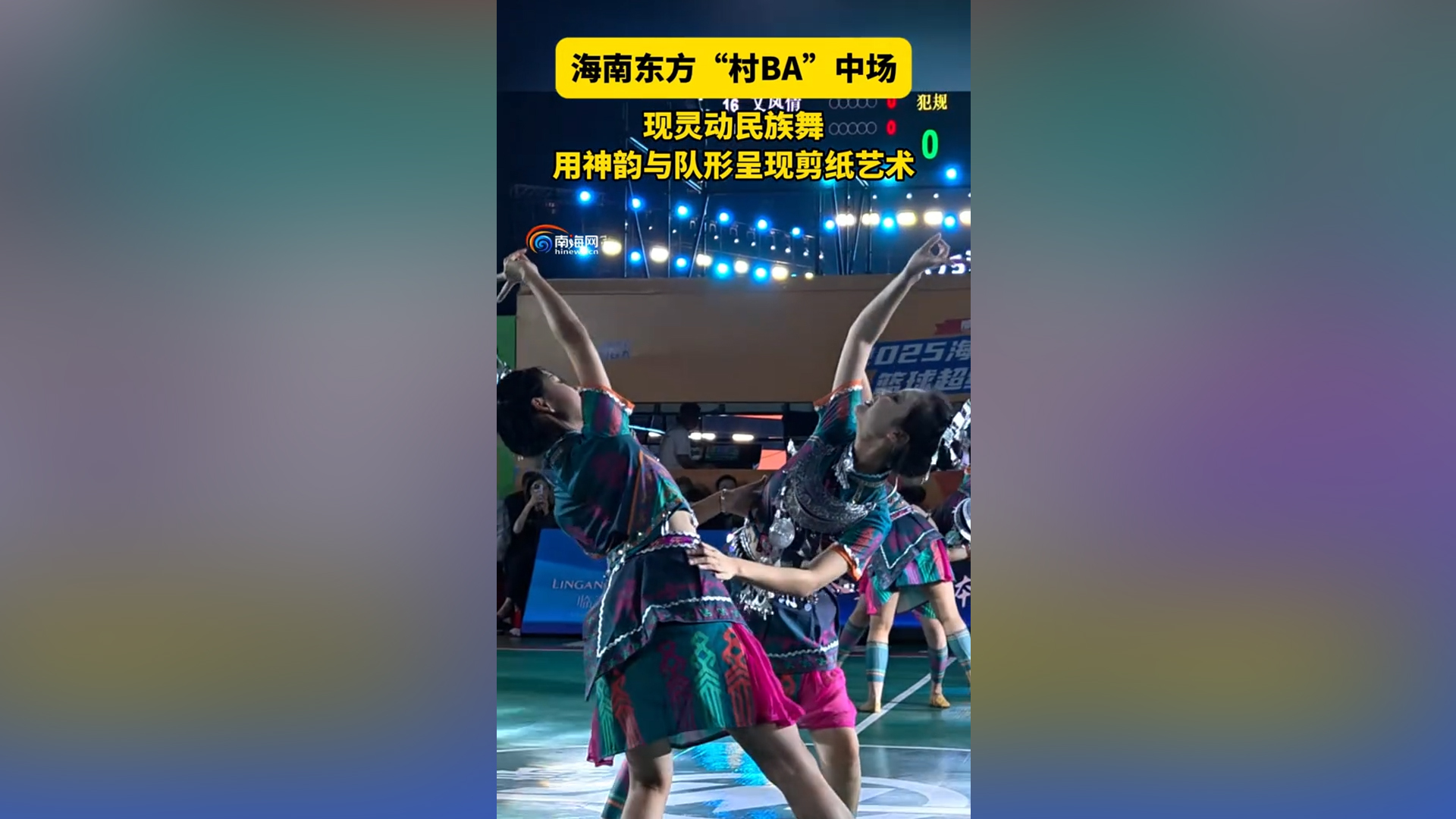 海南东方“村BA”中场现灵动民族舞 用神韵与队形呈现剪纸艺术