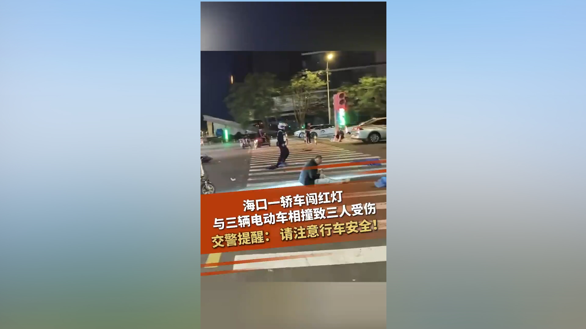 海口一轿车闯红灯与三辆电动车相撞致3人受伤