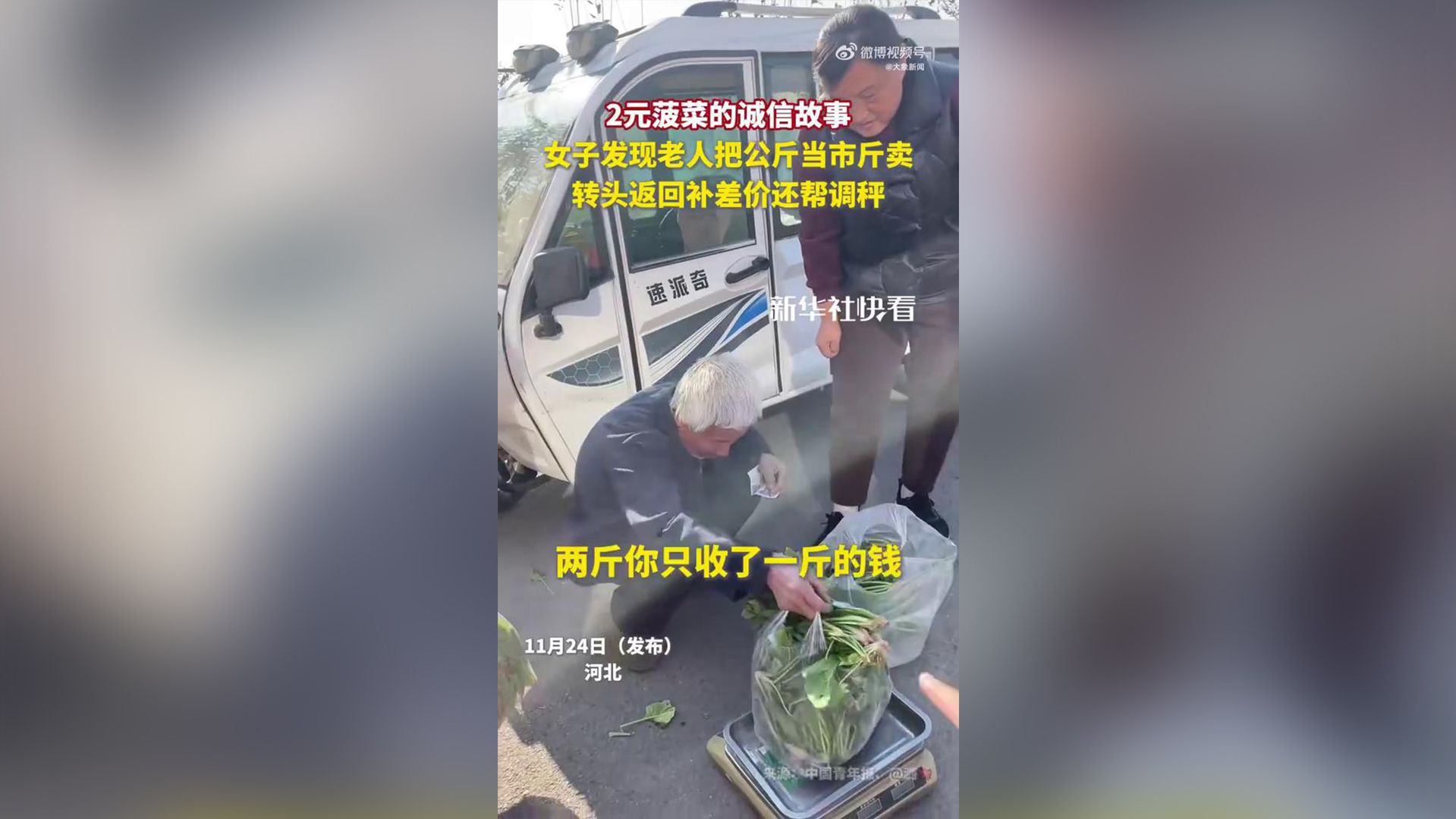 卖菜老人调错秤把公斤当市斤卖 女子主动补钱