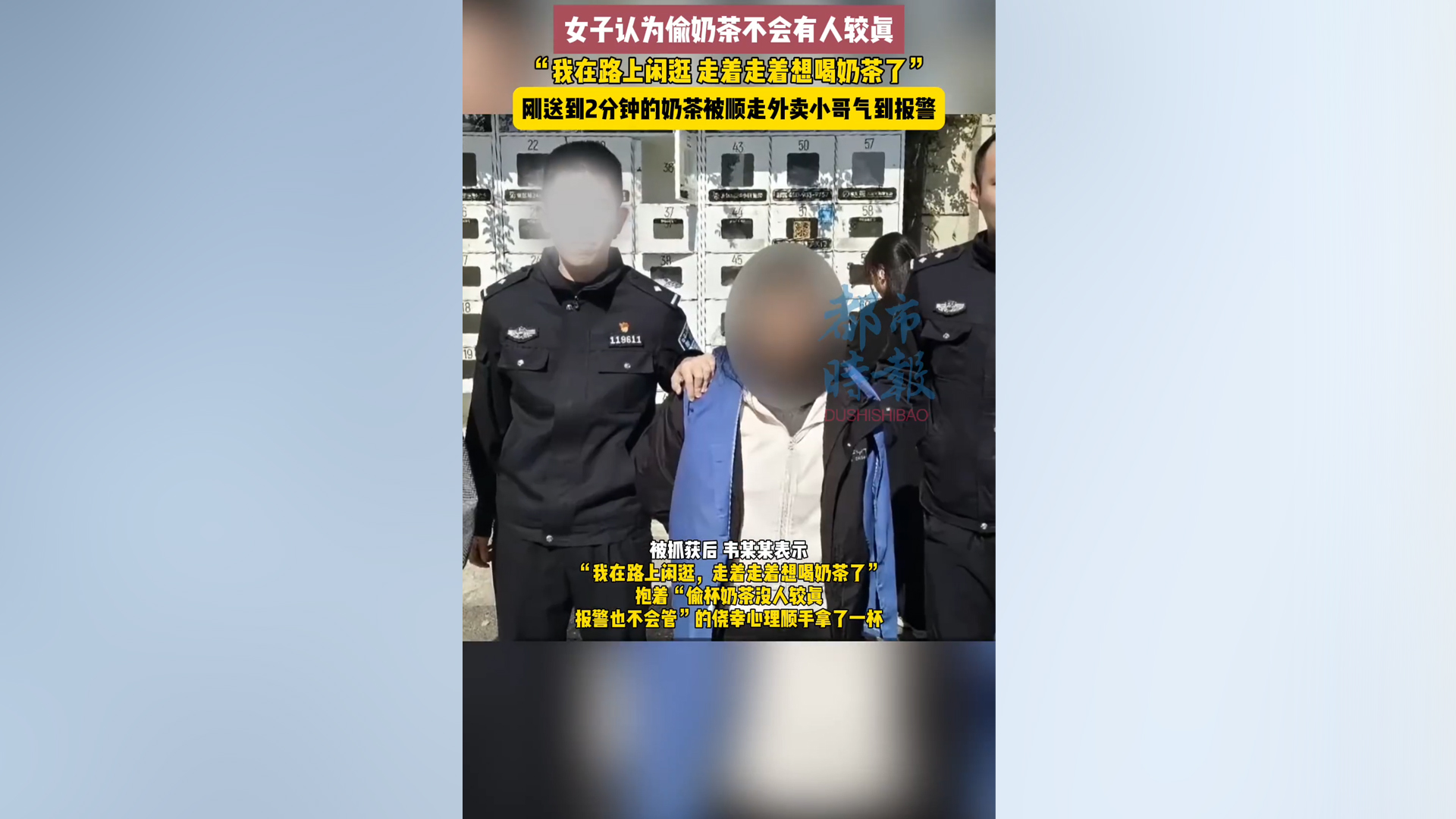 女子嘴馋顺走刚送到2分钟的奶茶 被外卖小哥报警抓获