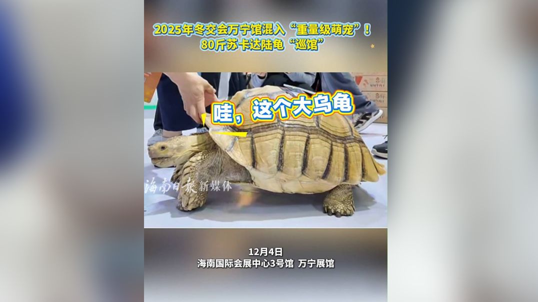 2025年冬交会万宁馆混入“重量级萌宠”,80斤苏卡达陆龟“巡馆”!