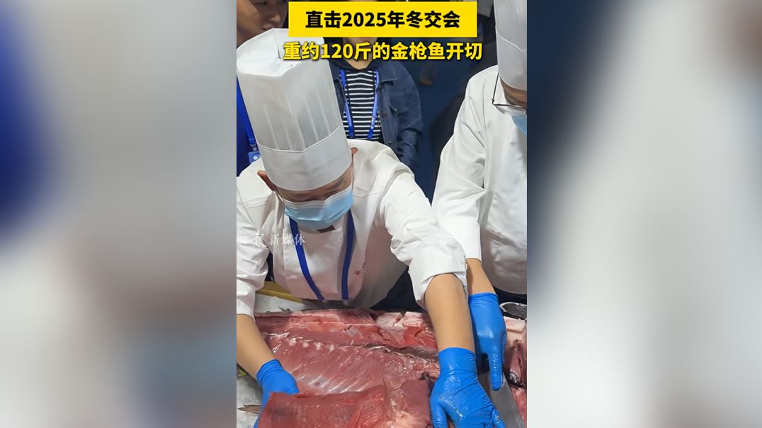 直击2025年冬交会丨重约120斤的金枪鱼开切