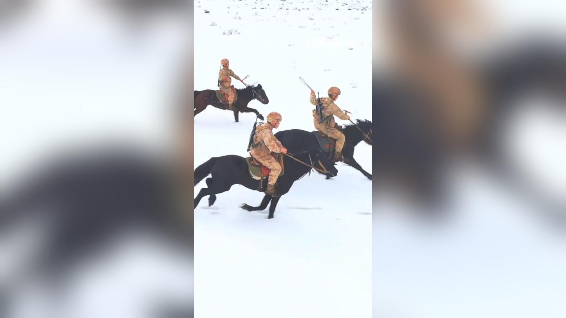边防战士雪原策马扬鞭侠气十足