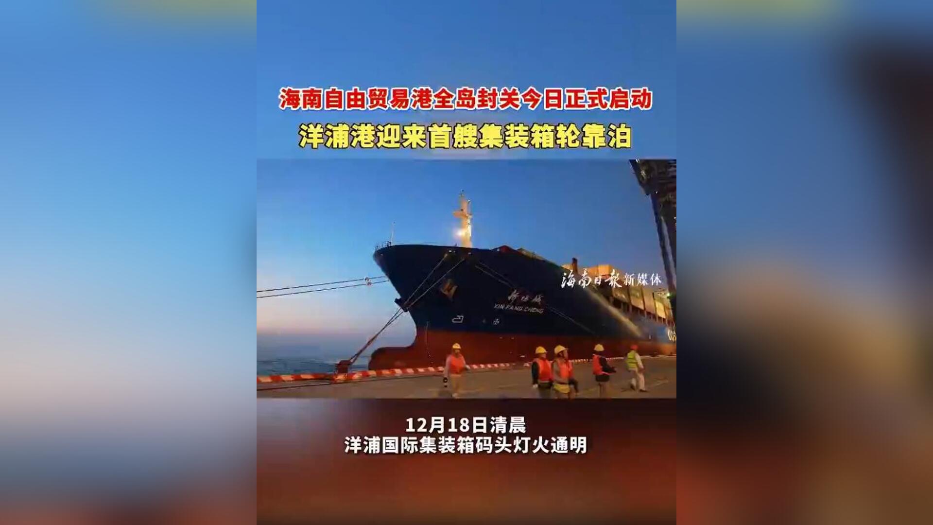 海南全岛封关后洋浦港迎来首艘集装箱轮靠泊