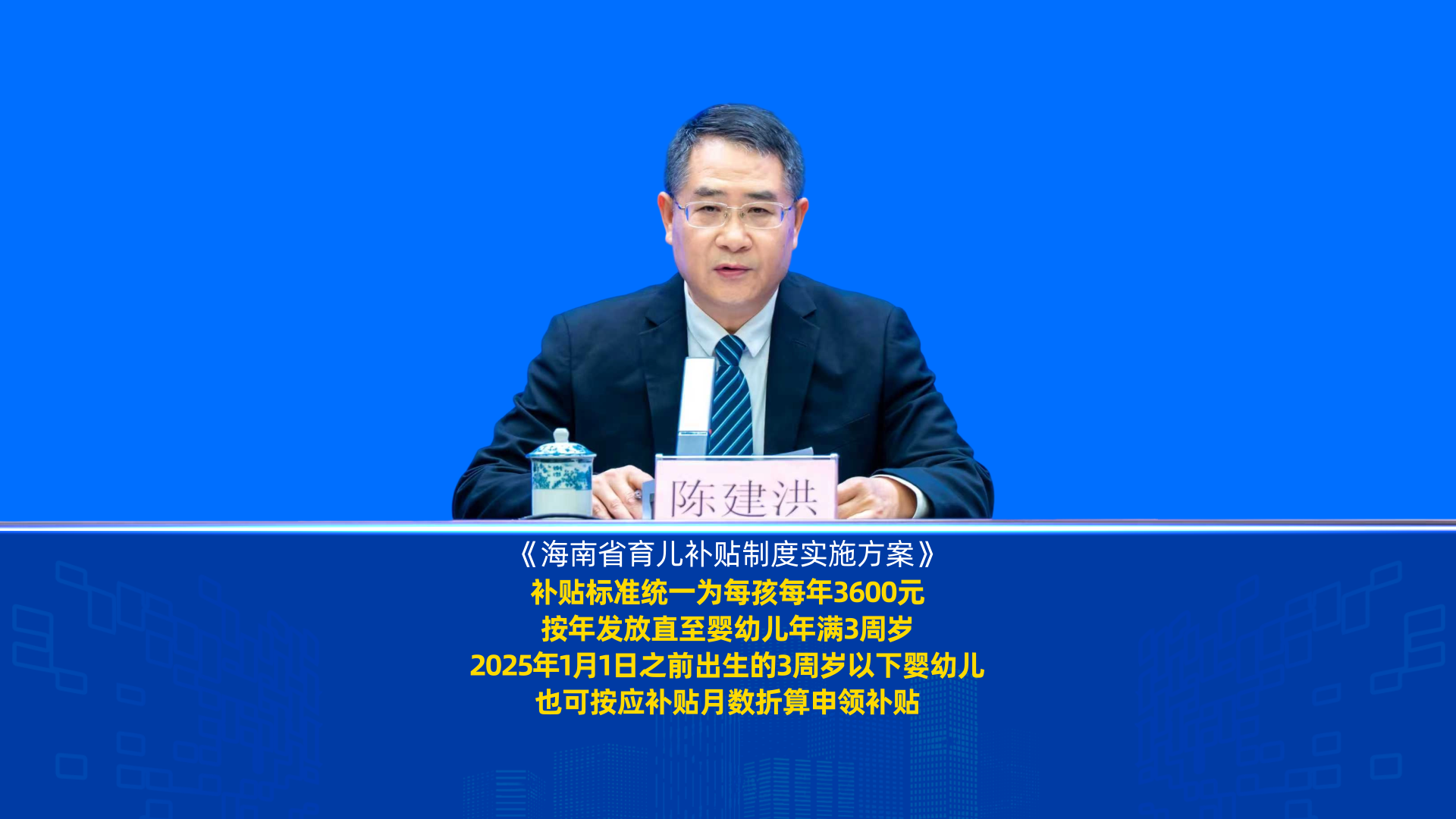 新闻发布会 | 《海南省育儿补贴制度实施方案》补贴标准统一为每孩每年3600元 按年发放直至婴幼儿年满3周岁