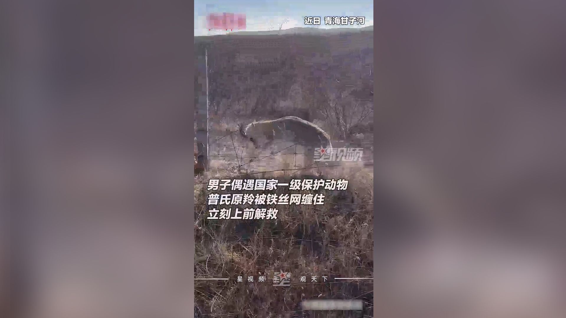 男子偶遇国家一级保护动物普氏原羚被铁丝网缠住,立马小心施救